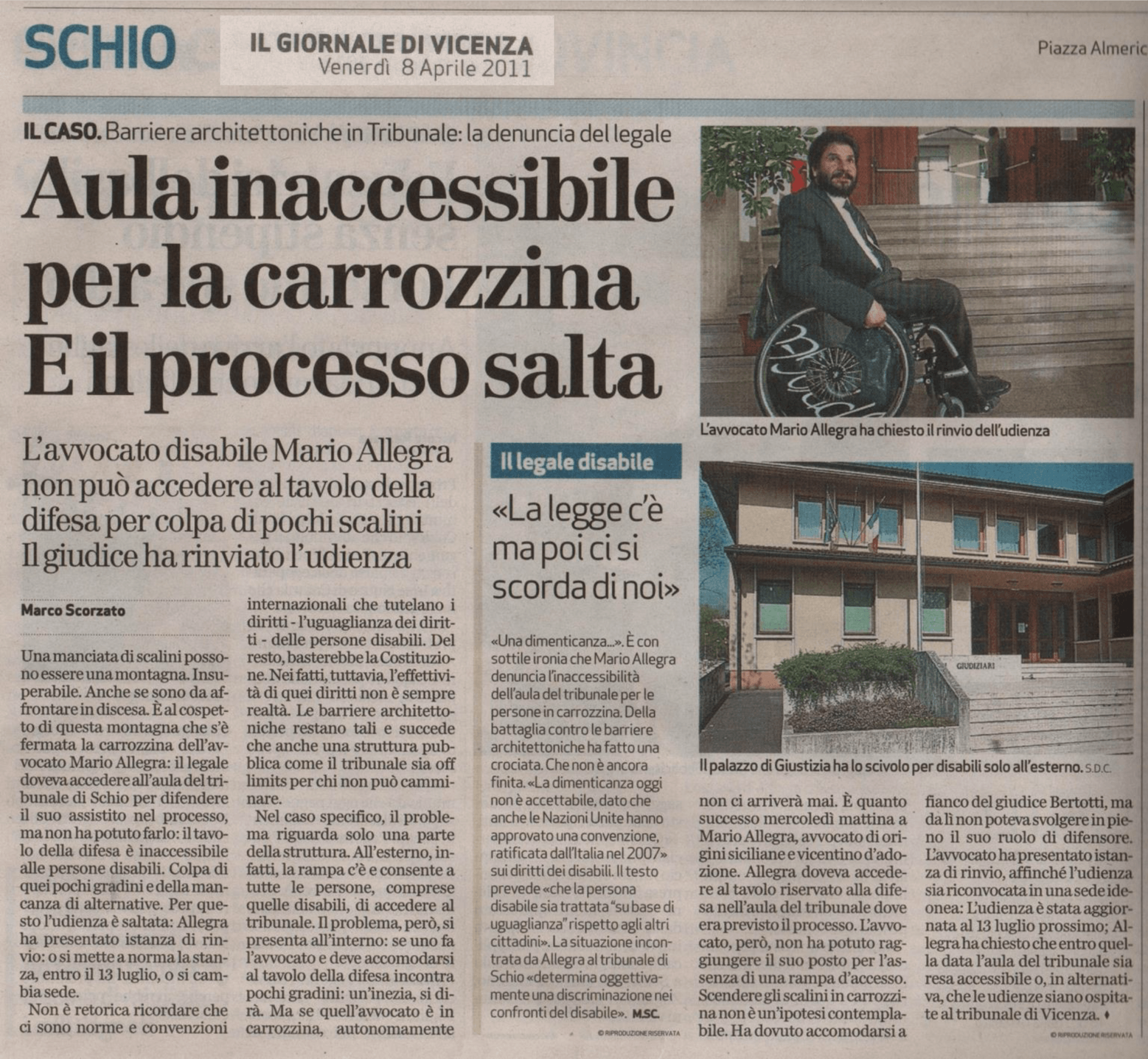 «Corte d’appello inaccessibile ai disabili», la protesta di un avvocato