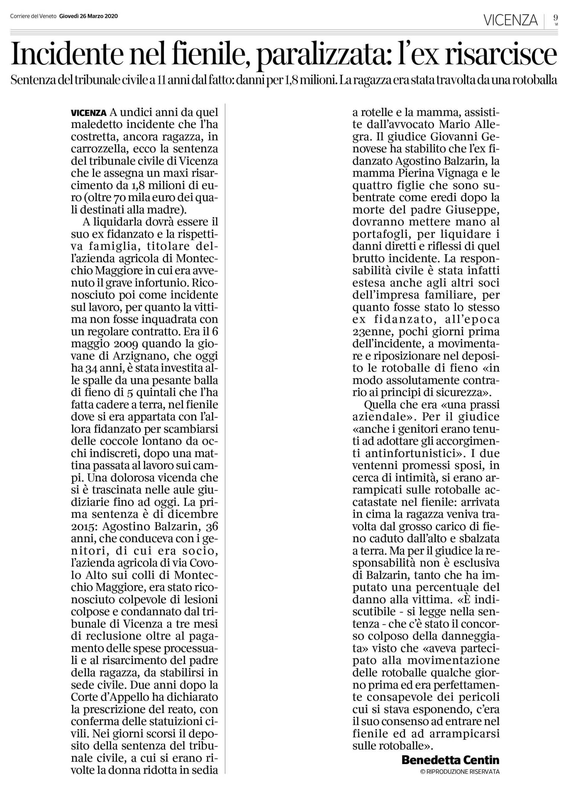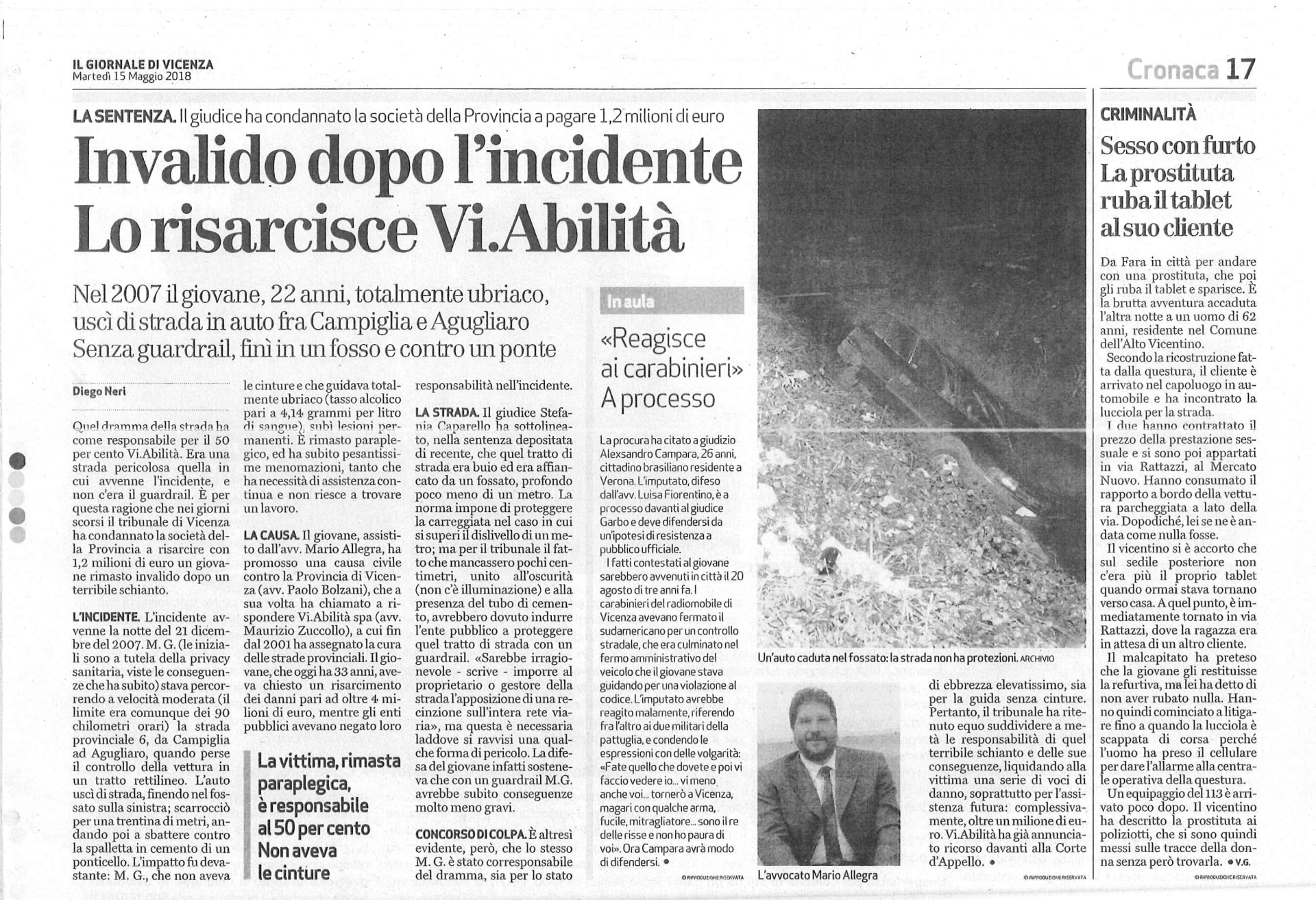 Il Giornale di Vicenza del 17 OTTOBRE 2019