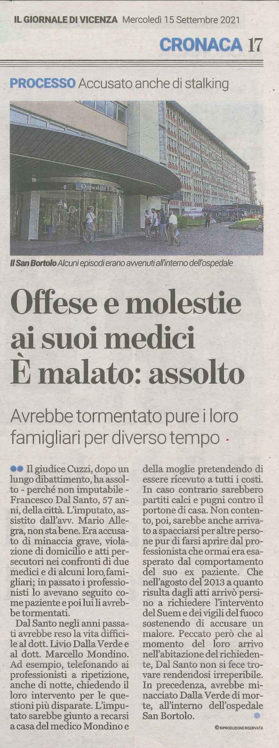 Ringraziamenti doverosi. Si ringraziano i legali di sar dom Rosario Avvocato Mario Allegra del foro di vicenza e Irma Conti del foro di Roma per l'ottimo lavoro difensivo svolto e per le capacita' professionali dimostrate durante tutte le varie fasi delle udienze, durate oltre 4 anni, del processo di Busto Arsizio di cui alle assoluzioni qui riportate...